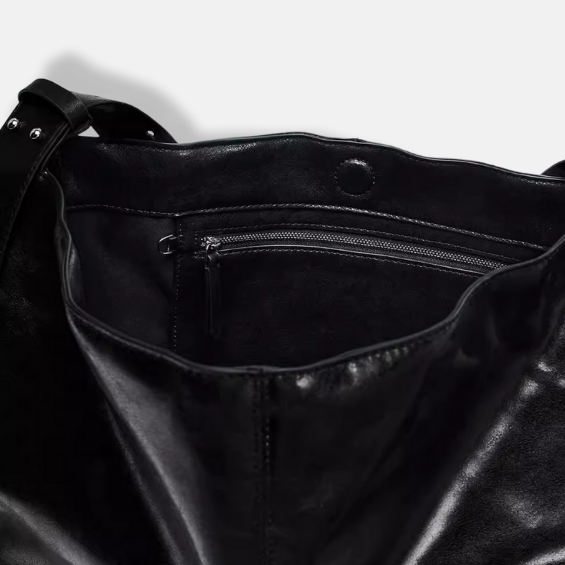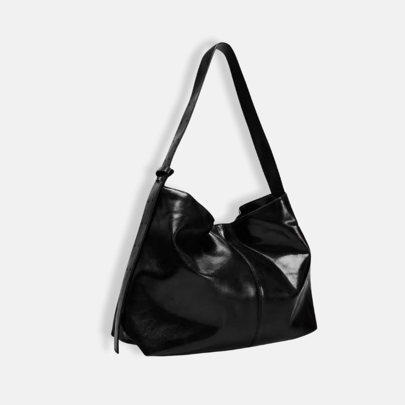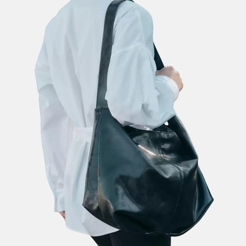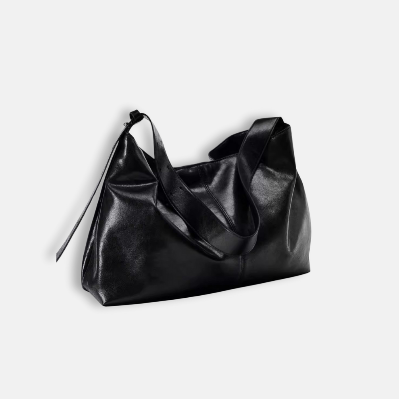 Black Leather Commuter Shoulder Bag – Large-Capacity Crossbody Tote