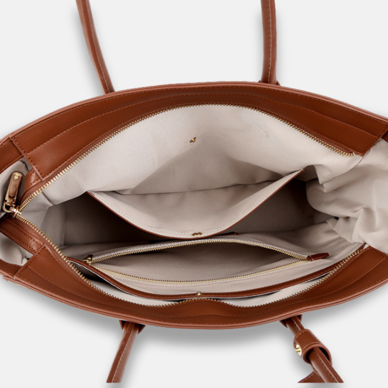 • Spacious interior fits laptop, books, cosmetics, and essentials