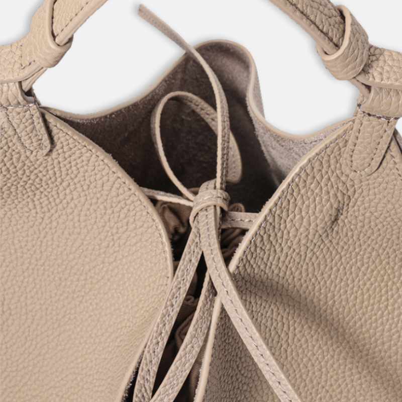 Leather Bucket Bag – Large-Capacity Cowhide Tote with Rope Strap